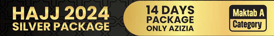| 07 | 13 JUNE | 7 ZIL HAJJ | AZIZIA | After Breakfast Transfer to AZIZIA HOTEL WITH FULL Dinners. |
